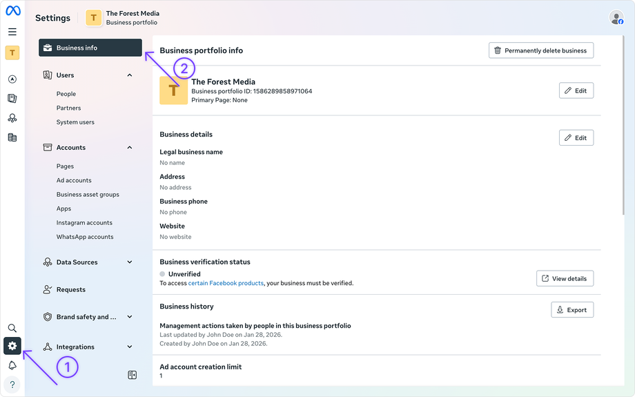 How to fill in your business information in the Meta Business Suite